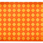 The money envelope is designed with orange and green-toned geometric patterns with a vignette effect.
